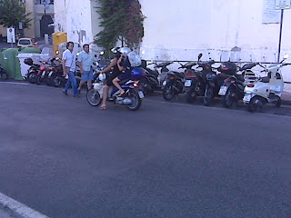 If you look closely to that white fluffy dot on the lower left side of the scooter, that's actually a dog, not a stuffed toy!
