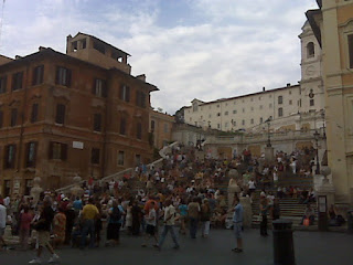 Why are there so many people sitting on the steps at the Piazza di Spagna?