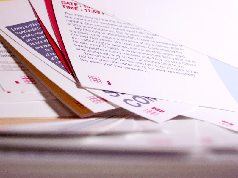 Acting as an accompanying catalogue to the exhibit for Dis-illusion, the catalogue is presented in a series of individual cards; each card flipping through every second, creating a constant loop of images and writings.
